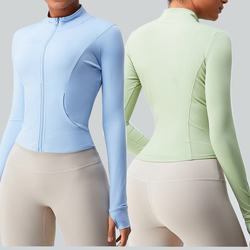 Ropa deportiva Mujer Slim Fit Zip up Manga Chaqueta deportiva con pulgar Yoga Top Fitness Ropa Etiqueta privada Marathon Ride Jacket