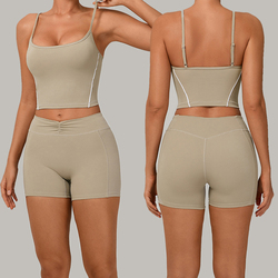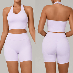Logotipo personalizado Slim Fit Ropa deportiva Traje Gimnasio Fitness Ajustable Deportes Camiseta sin mangas Conjuntos de 2 piezas Cintura alta Yoga Conjuntos cortos para mujeres