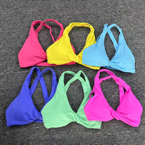 Logotipo personalizado Almohadilla extraíble Cross Back Yoga Bra Workout Gym Top Twist Athletic Yoga Sports Bra
