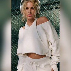 Sudadera holgada con cuello Halter y logotipo personalizado para mujer, sudadera deportiva de gran tamaño con hombros descubiertos para gimnasio